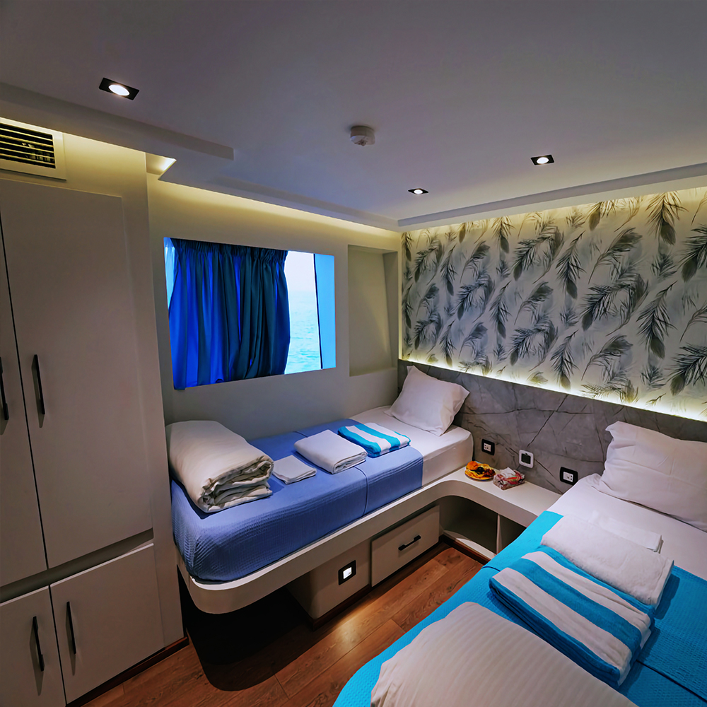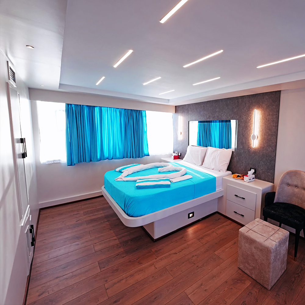 Kelionės metu gyvensite modernioje PLATINUM klasės PREMIER jachtoje „MY ANEMONE“, pastatytoje 2022 metais – tikrame penkių denių prabangos ir komforto rojuje po vandeniu ir virš jo. Laivas sukurtas tiek nepamirštamiems nardymo nuotykiams, tiek atsipalaidavimui tarp nardymų, siūlantis erdvias denių terasas, stilingus kajučių interjerus ir moderniausią įrangą.